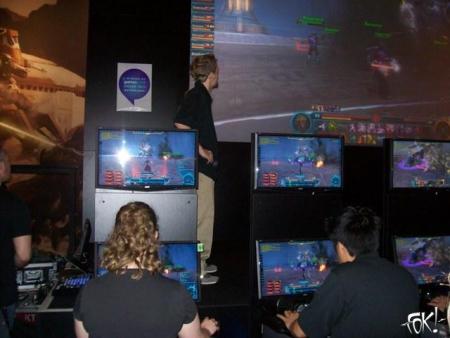 De stormloop bij de entree was maar één van de vele dingen waar mijn lengte in het nadeel was. Waar ik me totaal niet op had kunnen voorbereiden was de gekte die ontstond bij de vele presentaties. Dat was trouwens een teleurstelling: alle presentaties - behalve die van Bioware - die ik op de com heb gezien, waren in het Duits. Nu kan ik me redelijk redden in het Duits, maar er ging toch nog een hoop langs me heen. Niet erg klantvriendelijk van ze, zeker aangezien ik ook bezoekers heb gesproken uit Hongarije en Amerika die helemaal geen Duits spraken.