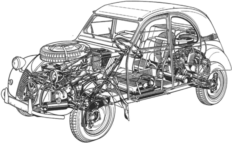 Al in 1935, net na de overname door Michelin, besloot de leiding van Citroën een nieuwe auto te ontwikkelen. Deze kleine auto zou speciaal worden gebouwd voor het ruige leven op het Franse platteland. Ze hielden een marktonderzoekje, waarna werd besloten dat de nieuwe auto twee boeren en 50 kilo aardappels moest kunnen vervoeren. Maar een vat wijn van 50 liter mocht ook.