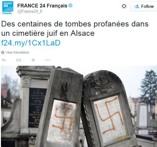 Wat de daders precies hebben gedaan op de begraafplaats in het stadje in het uiterste noordoosten van Frankrijk, is niet duidelijk. Cazeneuve noemde de daad "verwerpelijk" en zei dat de politie onderzoekt wie er achter de vernielingen zit of zitten.