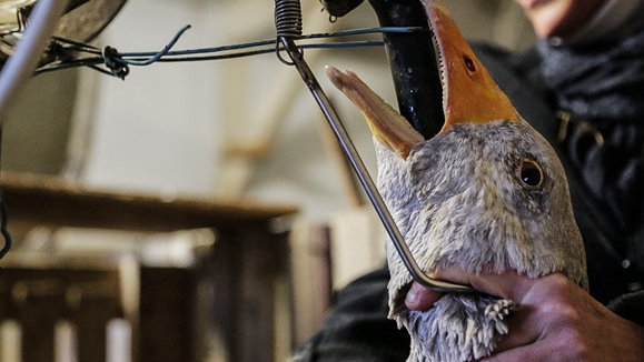 De supermarkten die gaan omschakelen, verkopen dit jaar nog staleend: Barbarie-eenden uit Frankrijk. Met duizenden dicht op elkaar gepropt, leiden ze een erbarmelijk bestaan. Hun snavels worden gekort, ze hebben geen zwemwater en ze staan hun hele leven op roostervloeren. Heel anders dan de vrije-uitloop eend. Dit zijn Pekingeenden die ook in Frankrijk worden geproduceerd. Zij hebben een buitenuitloop, staan op stro en hebben iets meer ruimte.