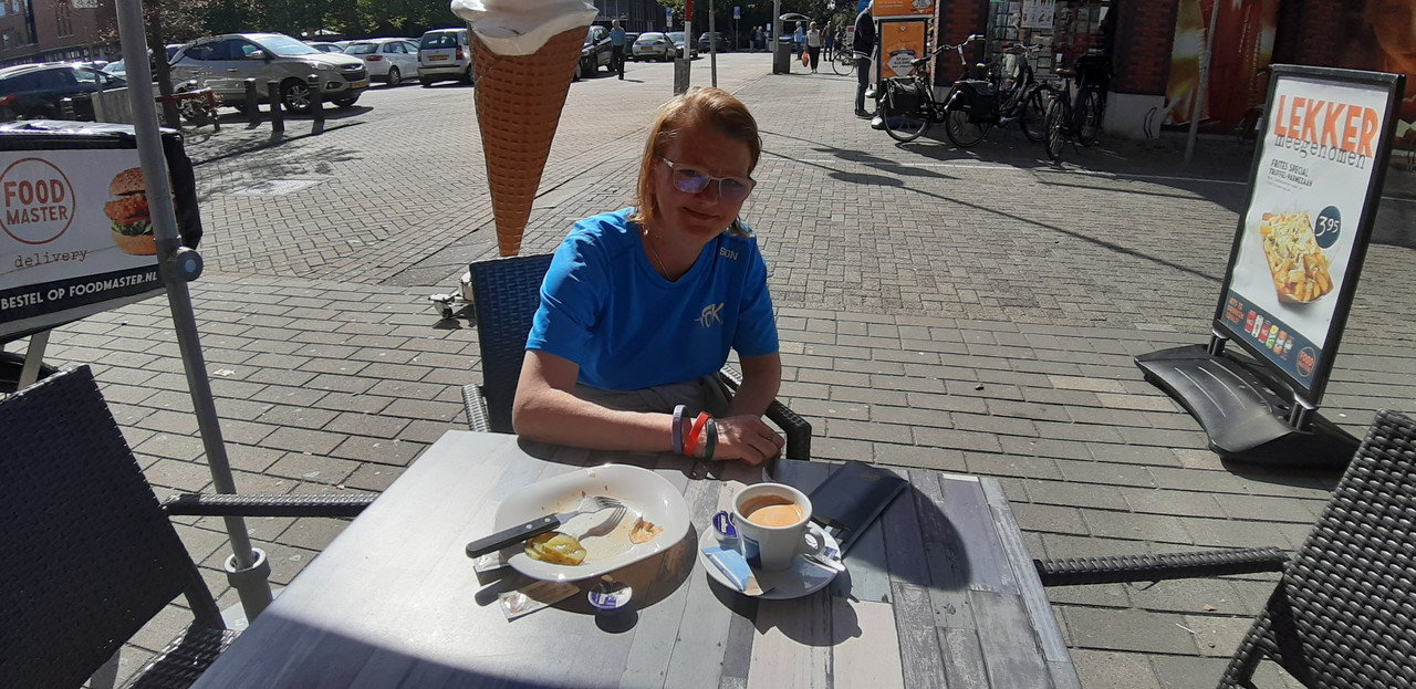 Inmiddels zit ik bijna op 25 km. Dankzij een lieve FOK!ker die me onderweg opwachtte ben ik voorzien van ijskoud water en een heerlijke lunch onderweg
