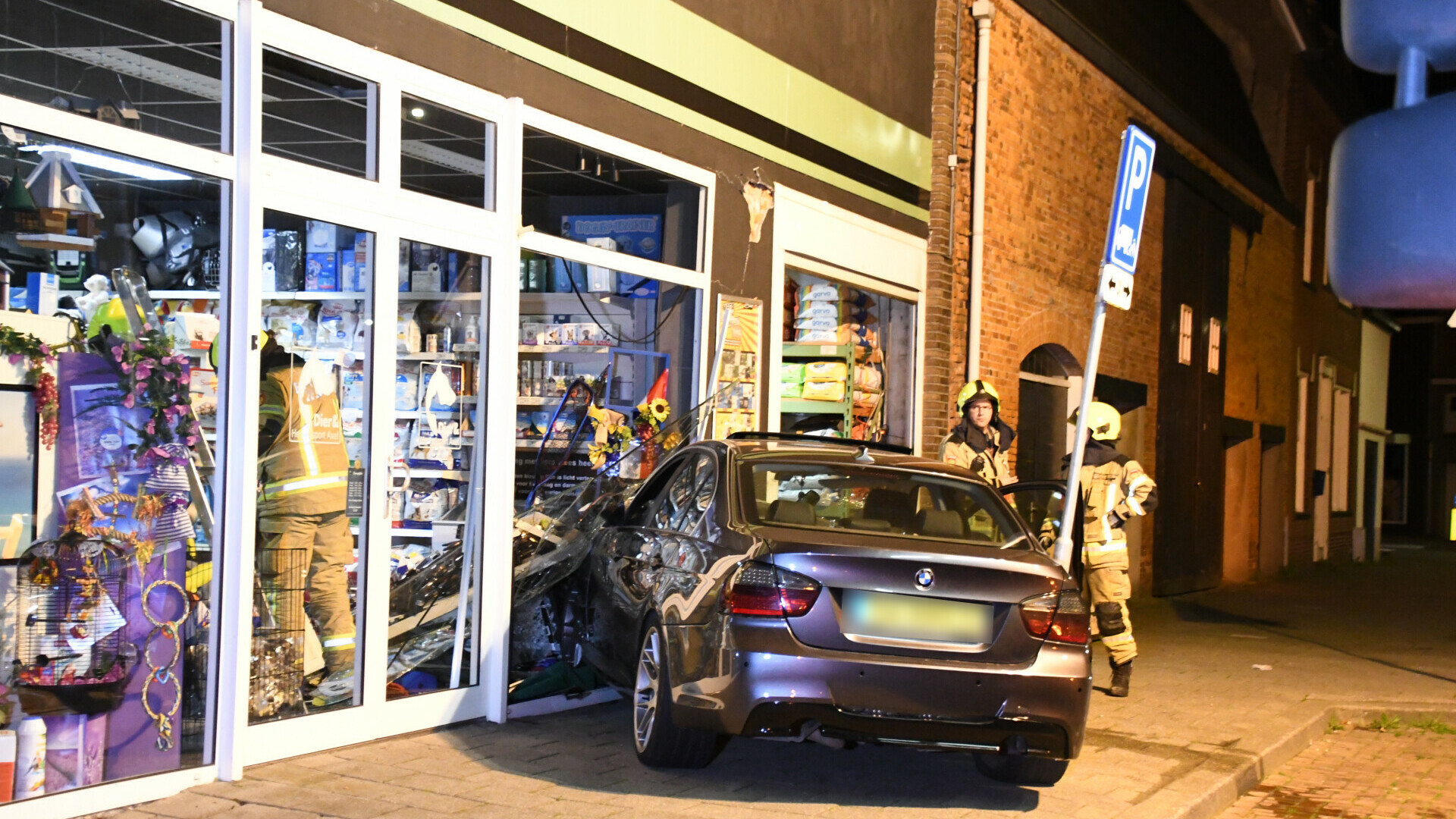 Een auto met meerdere inzittenden is vannacht, zaterdag 16 september, tegen een gevel van een dierenwinkel in Axel gereden. De vermoedelijke bestuurder uit Axel is aangehouden. Hij had te veel gedronken.