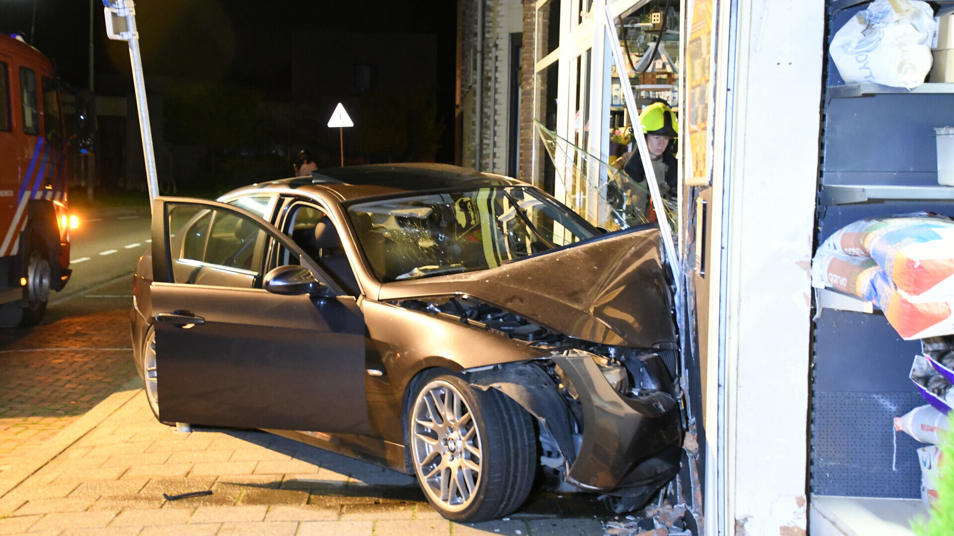 De hulpdiensten zijn rond 01.10 uur gewaarschuwd. Ter plekke zien zij dat een auto de pui van de winkel aan de Buitenweg heeft geramd. Getuigen laten weten dat er meerdere mensen in de auto zaten, die zijn weggevlucht. Op de Singelweg treffen agenten de vermoedelijke 41-jarige bestuurder aan. Zij nemen een blaastest af. Hieruit blijkt dat hij te veel heeft gedronken. Hij wordt naar een ziekenhuis gebracht voor een medische controle. Daar is ook een bloedproef afgenomen om het alcoholpromillage in zijn bloed definitief vast te stellen. Daarna is de verdachte naar een politiebureau gebracht voor verhoor.