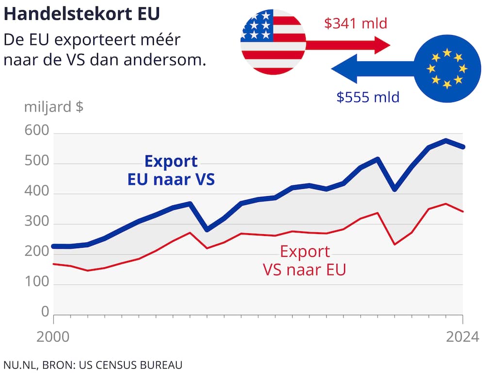 Trump voert importtarieven in, en de gevolgen laten niet lang op zich wachten. Handelspartners reageren direct, en de spanningen lopen snel op. De Duitse bondskanselier Olaf Scholz spreekt van een "aanslag op de wereldhandel", EU-voorzitter Ursula von der Leyen noemt het een "klap voor de wereldeconomie", en de BBC kopte zelfs dat dit mogelijk de grootste verandering in de wereldeconomie in honderd jaar is.