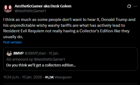"Resident Evil Requiem geen Deluxe Edition vanwege Trump"