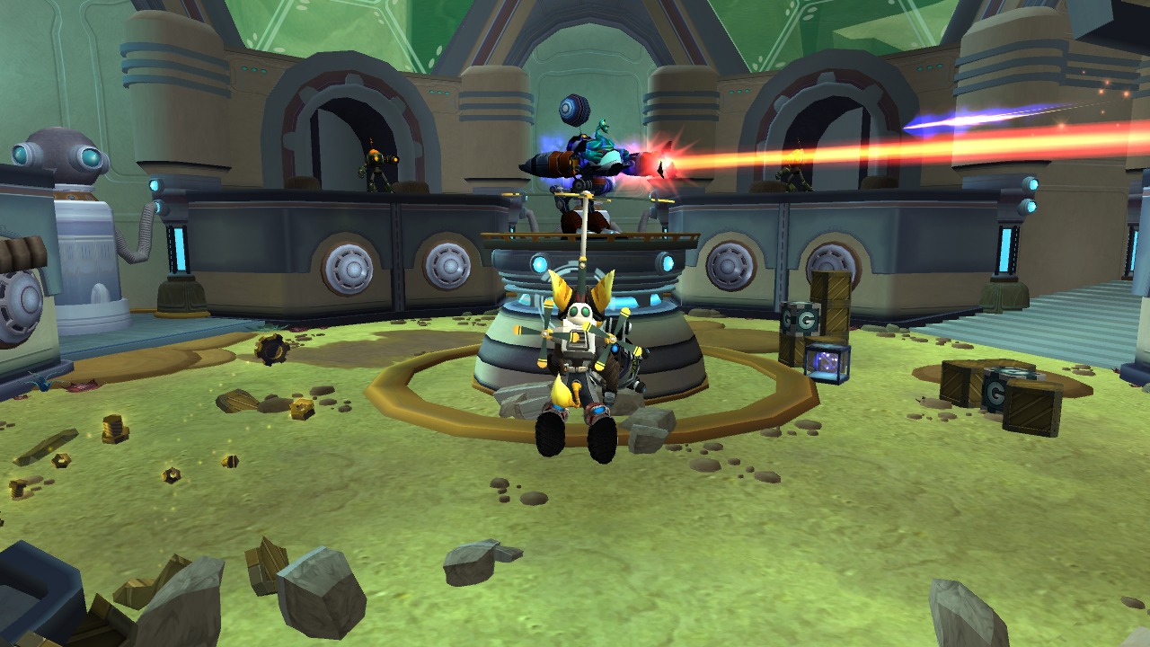 Wat wel jammer is, is het feit dat de cutscenes niet opnieuw zijn gemaakt. Enkele cutscenes, die niet pre-rendered zijn, zijn wel scherp. De pre-rendered cutscenes zien er daarentegen wazig en korrelig uit en vullen niet het hele scherm. Dit is zonde, vooral voor filmpjes zoals de James Bond-achtige Agent Clank-stukjes. Naast dit minpunt ziet de rest van de game er prima uit.