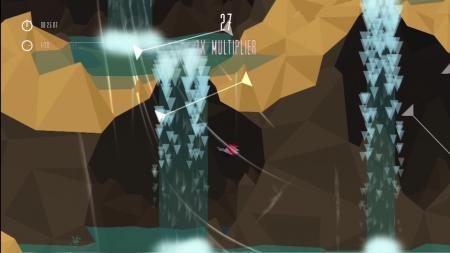 In Chasing Aurora leg je met een kek uitziende vogel een bepaald parcours af. Dat parcours is een serie lijnen waar je doorheen vliegt en elke lijn levert punten op. Hoe langer je een vlucht volhoudt, hoe hoger de multiplier wordt en hoe meer punten je krijgt. En: hoe beter je vliegt, hoe meer tijd je krijgt om door te vliegen, zodat je nog meer punten haalt. Een simpel, verslavend concept, zo op papier. Maar het gaat ergens mis. Chasing Aurora heeft namelijk niets anders te bieden.