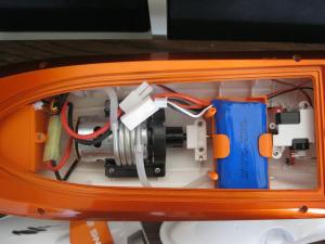 Stroomvoorziening: 7,4V 1500mAh in de boot, 6*AA in de remote control