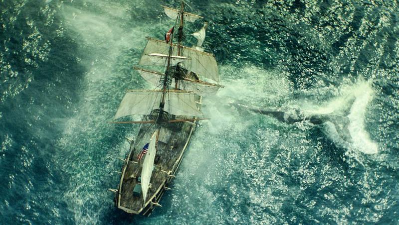 Waar de kijker eigenlijk op wacht zijn beelden van de beruchte potvis die zich tegen de Essex keert. De scènes op zee zijn gelukkig erg mooi om te zien en al vroeg in de film zijn er genoeg momenten die zich op het water afspelen. Mooie beelden zijn er met name wanneer Hemsworth in de beginfase van de film vanuit een krakkemikkig roeibootje met een harpoen in zijn hand achter de walvissen aan gaat. Hier weet regisseur Howard vroegtijdig een fijne sfeer neer te zetten waarin genoeg afwisseling is te vinden tussen scènes op het vasteland en op zee, in plaats van een ellenlange aanloop naar één enkele reis.