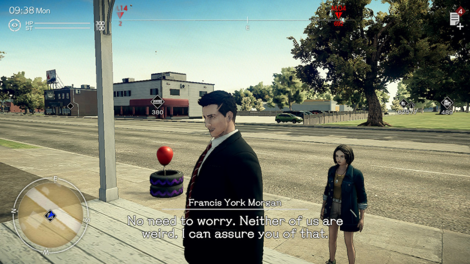 Zowel de dorp- en actiesegmenten verweven een verhaal dat in het begin veel lijkt op die van het origineel, maar uiteindelijk wordt het geheel veel meer in een hele persoonlijke richting geduwd. De sequel gaat in op thema’s zoals het overkomen van demonen uit het verleden en de betekenis van een nieuwe start creëren. Swery’s genuanceerde en vermakelijke schrijfstijl leidt uiteindelijk ook tot een bevredigende conclusie. Dit is met gemak een van de meest grappige en geestige games die er zijn. De onderliggende oprechtheid van alles zorgt ervoor dat je geïnvesteerd raakt, ongeacht hoe gek ook bepaalde situaties worden.