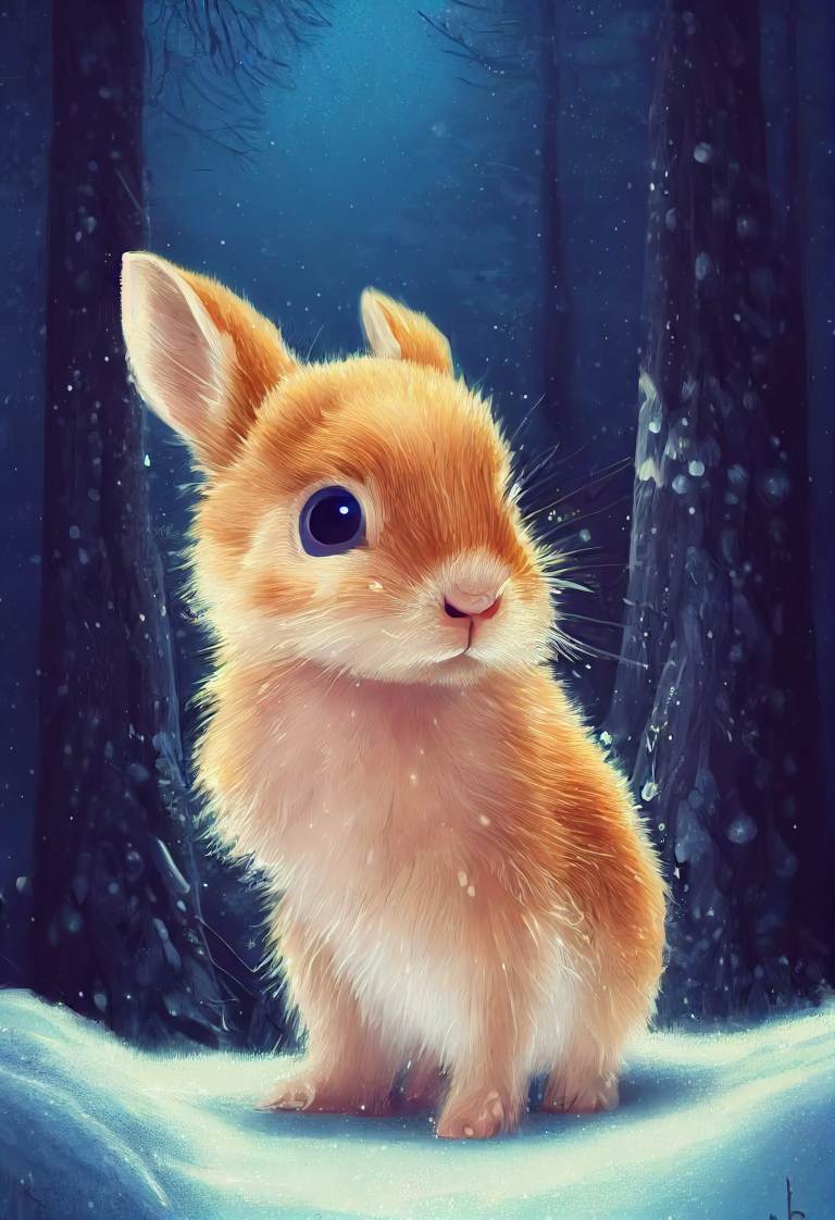 prompt: [Model: MidJourney] Hyperdetailed portrait illustration in the Style of Disney Pixar and Ilya Kuvshinov, in a magical glowing winter forest, a chibi baby rabbit, Sparkling white fur, big beautiful detailed eyes, on a mushroom, wholesome, adorable, golden ratio Composition, Fantasy vibes, very atmospheric, Soft Backlight, cinematic, high resolution, Photorealistic