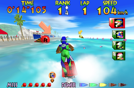 Water in games wordt almaar realistischer op het beeldscherm getoverd. In games als Crysis lijkt het wel alsof je op een Caribisch eiland bent als je je in het diepe blauwe begeeft. Maar één game heeft water al realistisch neergezet toen 3D-gaming nog in de kinderschoenen stond: Wave Race 64. In dit racespel was het de bedoeling om met jetski's te slalommen tussen boeien en de tegenstanders te verslaan. Maar het water was minstens zo'n geduchte concurrent als de tegenstanders. De golven zorgde ervoor dat de jetski realistisch op en neer bewoog, wat bochten een stuk lastiger kon maken. Maar de slimme speler kon de zee bedwingen en haar tot zijn voordeel gebruiken. Zo was het mogelijk om, mits juist getimed, een golf als sprong te gebruiken en over obstakels heen te springen, of er onderdoor te gaan, en zo een shortcut te creeëren. Water is niet slechts een achtergrond of een visueel effect, maar een integraal onderdeel van de gameplay in Wave Race 64. Enkel rondjes varen en truukjes doen in het tutorialgebied, Dolphin Park, kon al garant staan voor een hoop amusement. Toendertijd was zo'n realistische weergave simpelweg ongekend. De water-physics in Wave Race zijn tot op de dag van vandaag indrukwekkend te noemen en zorgen ervoor dat het een unieke game in zijn genre is gebleven, het vervolg Blue Storm daargelaten.