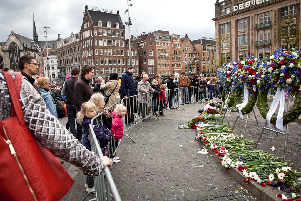 Kransen op de Dam van Dodenherdenking