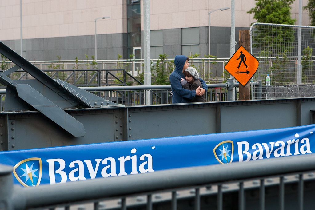 Enkele toeschouwers hadden het koud gekregen in de regen
