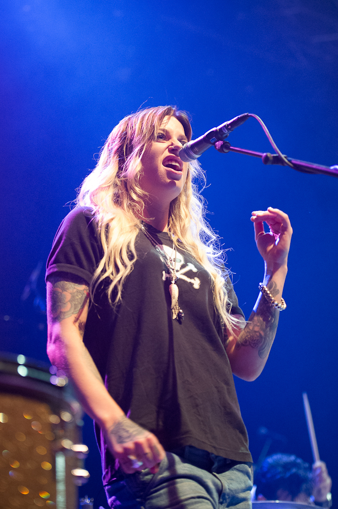 Slechts één keer deze tour doet Train Nederland aan, dus het was niet verwonderlijk dat het concert al snel was uitverkocht. Al vroeg op de avond stond er een lange rij voor de deur, het bewijs dat iedereen een goed plekje vooraan wilde bemachtigen. Toen om 20:00 eindelijk de lampen uitgingen kreeg het publiek als opwarmertje eerst een optreden van de Nieuw-Zeelandse singer-songwriter Gin Wigmore. En wat voor een opwarmertje. Met Amy Whinehouse achtige klanken, aangevuld met een overdosis pit en bravoure, ging de zaal al op het tweede nummer helemaal los. De muziekliefhebbers die niet speciaal voor Train naar Tilburg waren gekomen, fluisterden al zachtjes dat ze de hele avond wel door mocht spelen. Zo ver kwam het uiteraard niet, maar het loont zeker de moeite om eens wat nummers van Gin Wigmore te beluisteren.