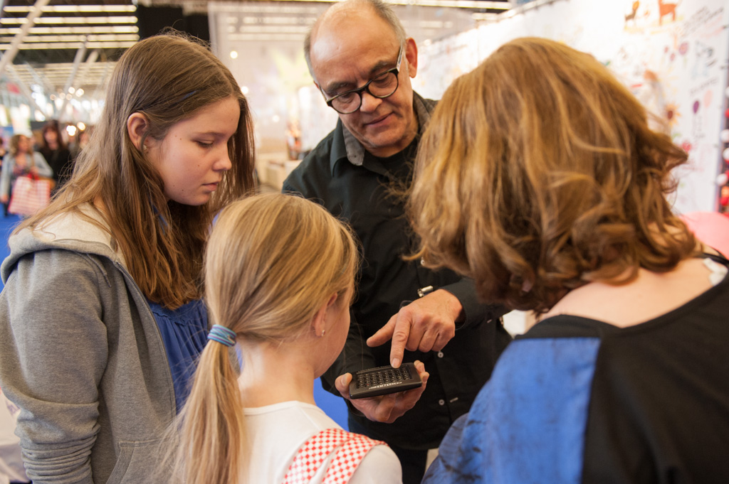 Bedenker Albert Eckhardt demonstreert zijn Frustr8tor aan de jongere generatie