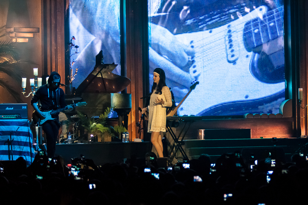 Wat vooral op opviel aan het concert, was dat het een concert was zonder teveel poespas. De bezoekers konden genieten van Lana del Rey met simpelweg haar band op het podium. Na het zingen van het nummer 'Cola' nam Lana del Rey een paar minuten voor haar hysterische fans. Ze stapte van het podium af om tussen het publiek handtekeningen uit te delen, foto's te laten nemen en hier en daar een fan een knuffel te geven. Iets wat niet vaak meer voorkomt bij artiesten met het kaliber van Lana del Rey.
