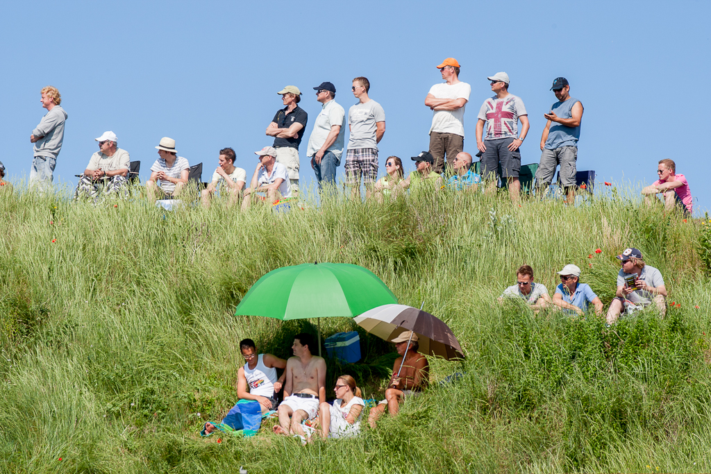 Toeschouwers in de duinen, het was mooi weer en dat zie je
