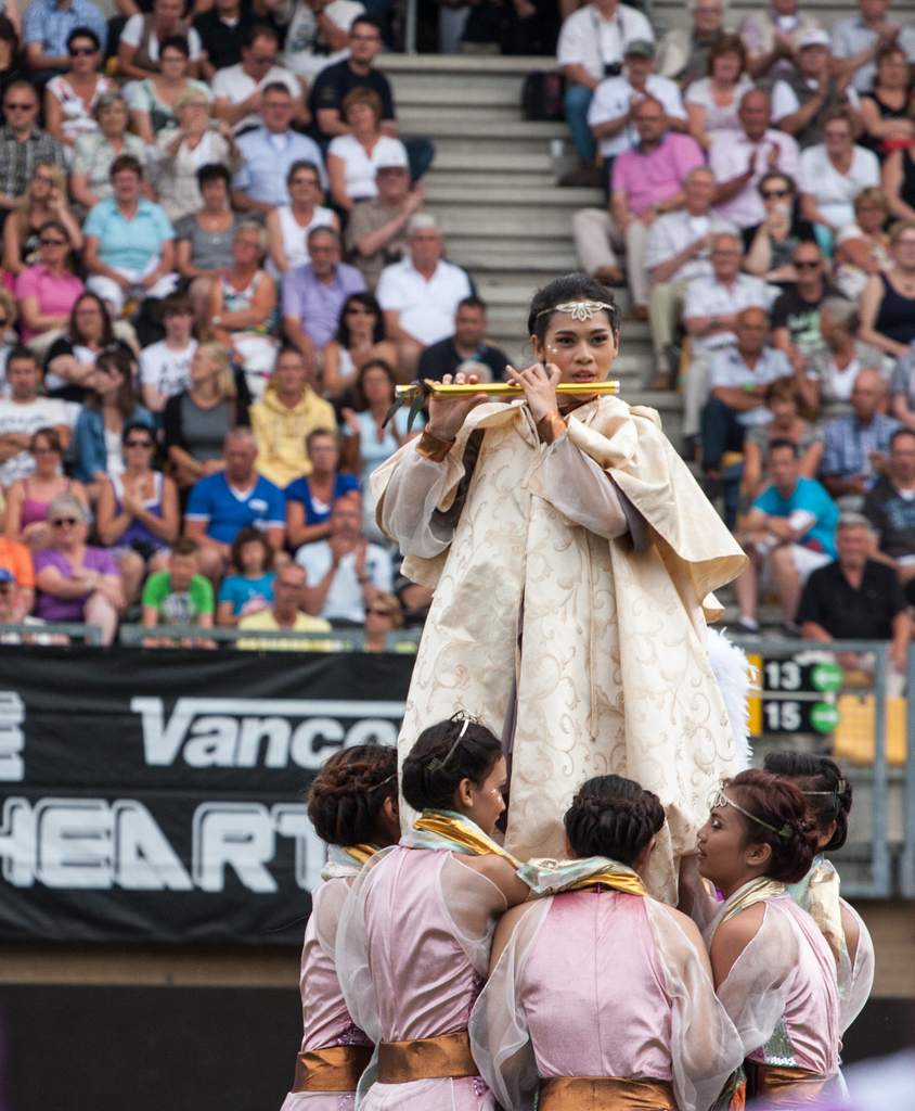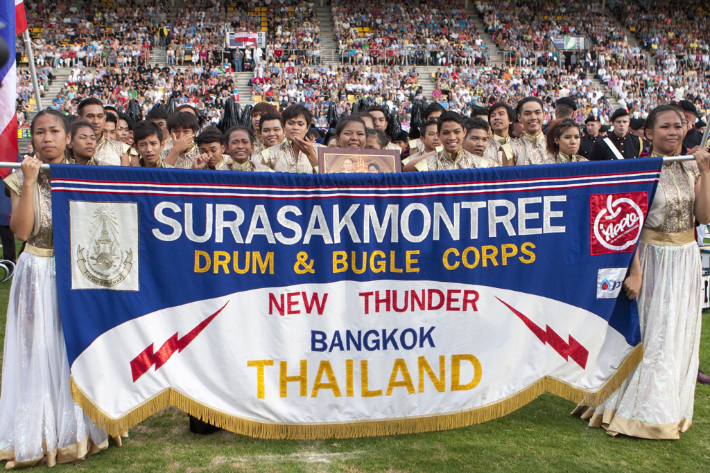In een bijna vol Rodastadion werd het Wereld Muziek Concours (WMC) afgesloten. Er was een gezellige sfeer met mooie klanken en mooie shows. Op deze zondag waren veel kandidaten van Thailand en Nederland te zien. De toch wel onverwachte winnaar van de dag is de Surasakmontree Brass Band. (Klik op de foto's voor grotere versies)