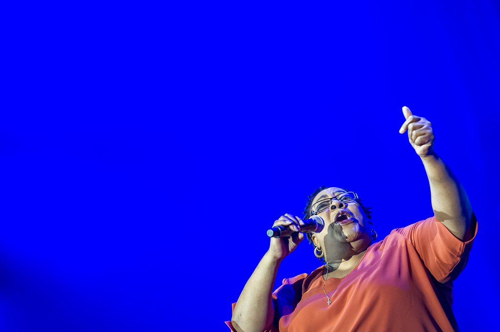 De wat matig spectaculaire opening van het ‘New Symphonics Orchestra’, onder leiding van de dirigent Maurice Luttikhuis, blijkt een valse start want de avond komt daarna gelijk op gang als Jocelyn Brown het podium betreedt. Het orkest ondersteunt haar prachtig samen met de lichte beats van Ronald Molendijk zelf.