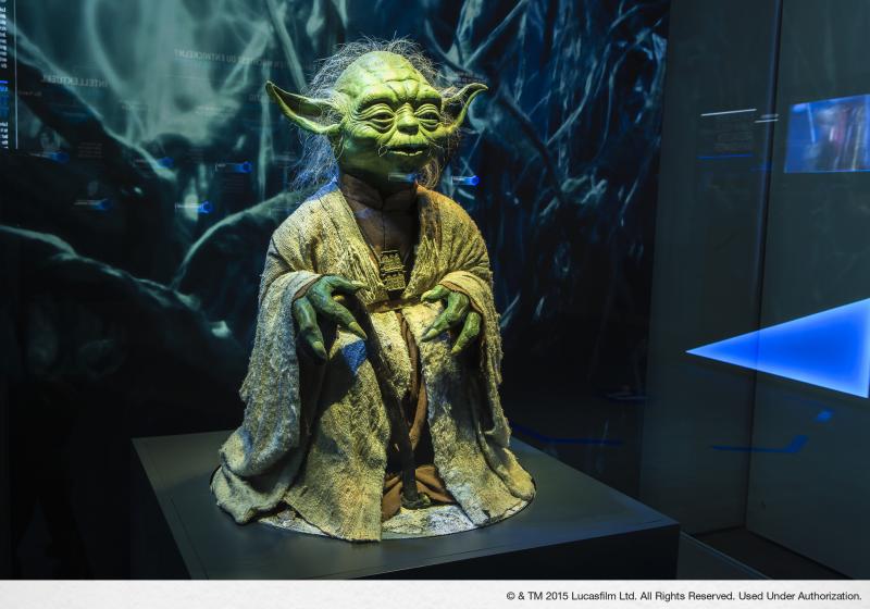 Wanneer de bezoeker binnen komt, is het eerst tijd om wat gear op te halen. Die bestaat uit een oortje, waardoor alle informatie die de makers graag aan je willen vertellen, door overgebracht wordt. Tevens is daar een walkman-achtig apparaat op aangesloten, die gebruikt maakt van RFID technologie, tezamen met een armband die nodig is om tijdens de verschillende stadia van de tentoonstelling mee te kunnen maken. Naast het interactieve karakter, waarover dadelijk meer, is er ruimte voor meer dan 200 verschillende props en kostuums die zijn gebruikt tijdens de Star Wars-films. Er is in de tentoonstelling vooral de focus op de originele trilogie en de prequels. Zo is de originele Yoda-pop te zien, maar ook artwork van verschillende conceptartists.